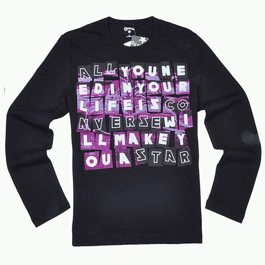 匡威長袖圖案T恤黑色男裝