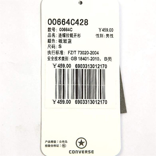 > 匡威男子連帽拉鏈開衫00664C428