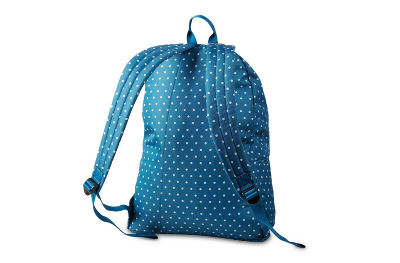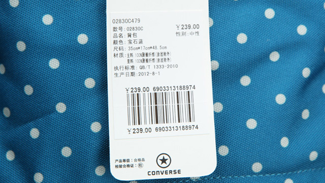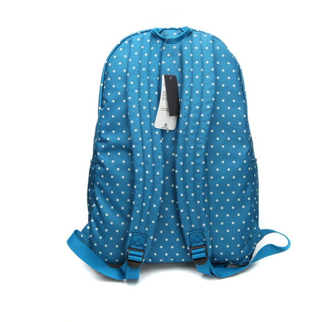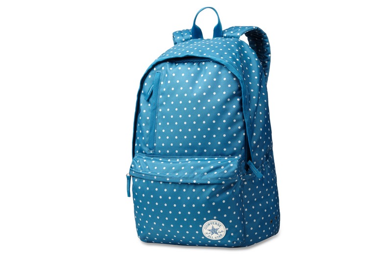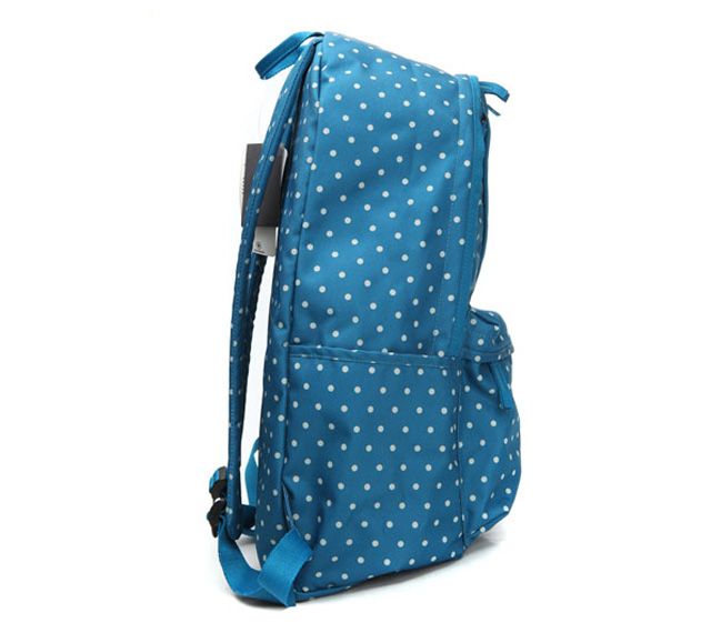 匡威02830C479-2013年匡威新款02830C479?印花款Chuck Taylor 背包,在基礎款簡潔實用的包型上,以藍色為底,采用了正風靡的白色波爾卡圓點印花圖,時尚又實用。聚酯纖維,寶石藍,容量30L。