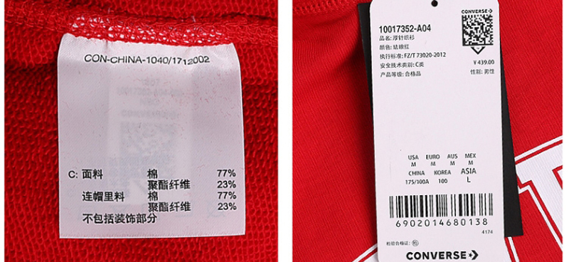匡威10017352-A04-CONVERSE(匡威)Converse Collegiate Text PO HoodieENAMEL RED10017352-A04