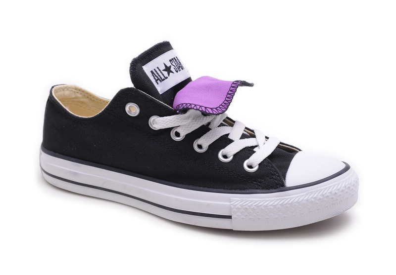 匡威All StarBlacks and Grays/Black/Iris Orchid低幫綁帶帆布女鞋
