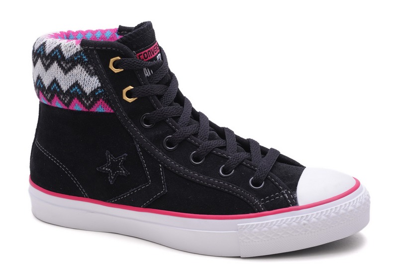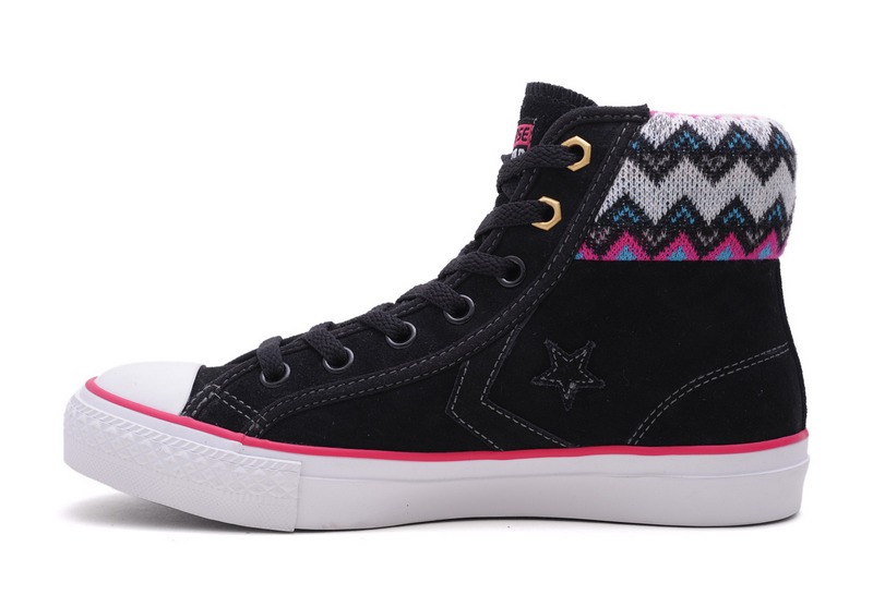 匡威Star ChevronBlacks and Grays/Black/Rasberry/White/Charcoal高幫綁帶牛皮中性鞋