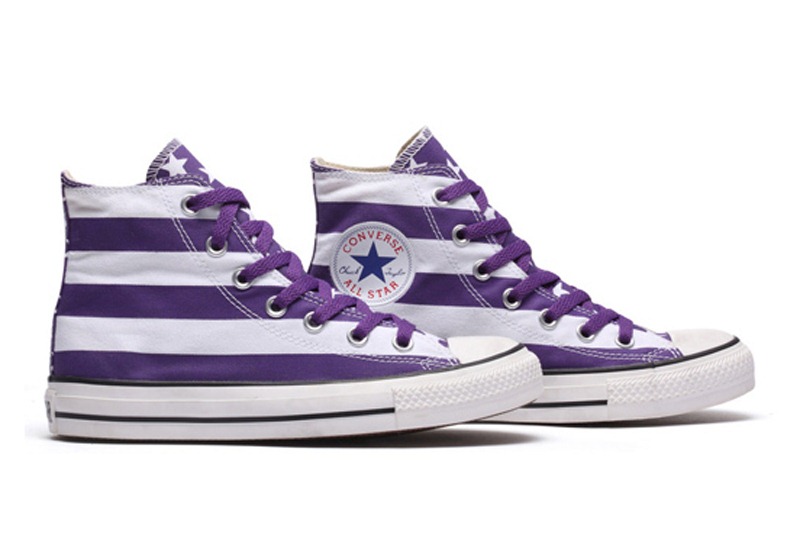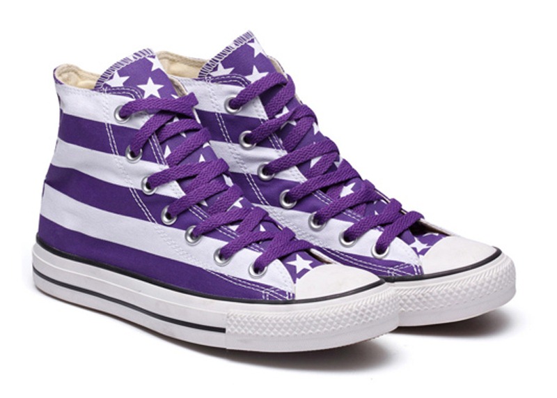 匡威122858-鞋身為國旗條紋,鞋舌印刷五角星.以美國國旗為設計理念,精神抖擻,也流露出淡淡的懷舊情結.