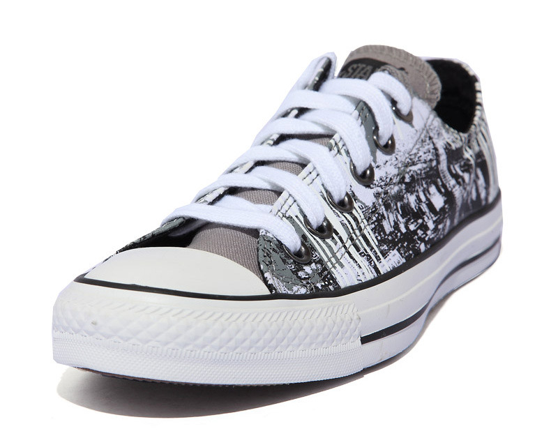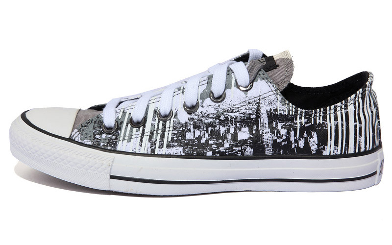 匡威126414X-不要只認為這是一直普通的涂鴉鞋款.細看這是紐約城市的剪影,而好似顏料的白色立體印刷工藝代表了紐約是一個充滿藝術氣質的城市.不斷進步和探索,讓我們也試著聰更多的視角去感受紐約的美.