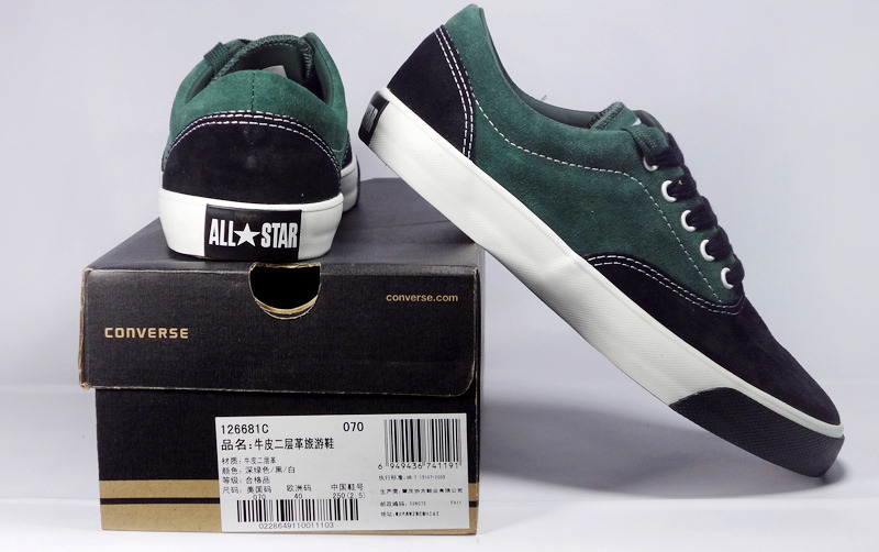 匡威SKATE深綠色/黑/白低幫綁帶牛皮中性鞋