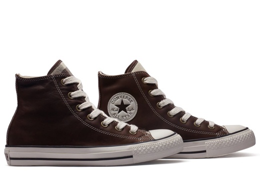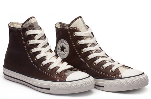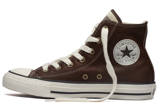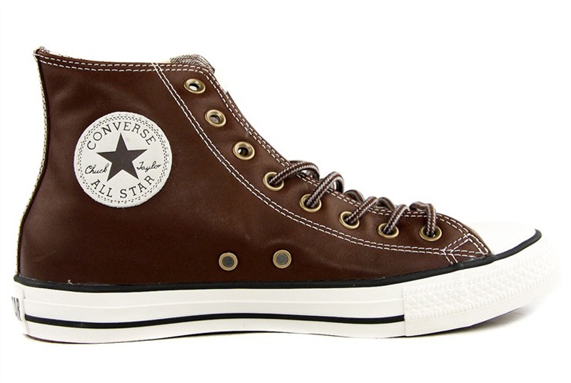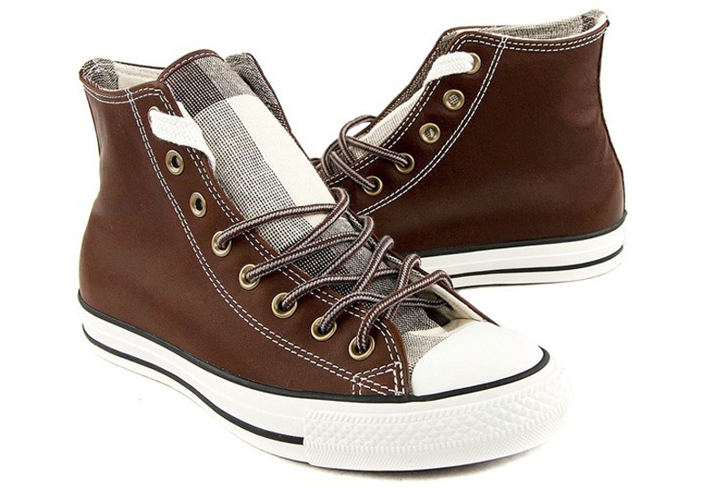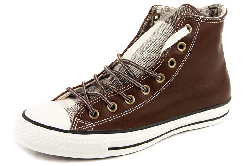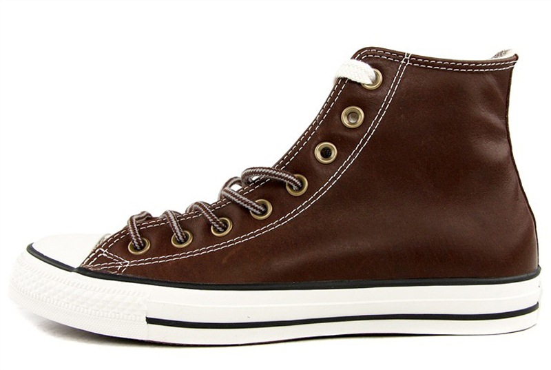 匡威All Star巧克力色/白高幫綁帶牛皮中性鞋