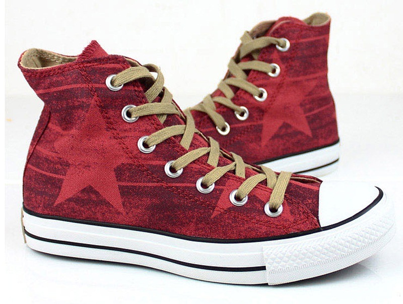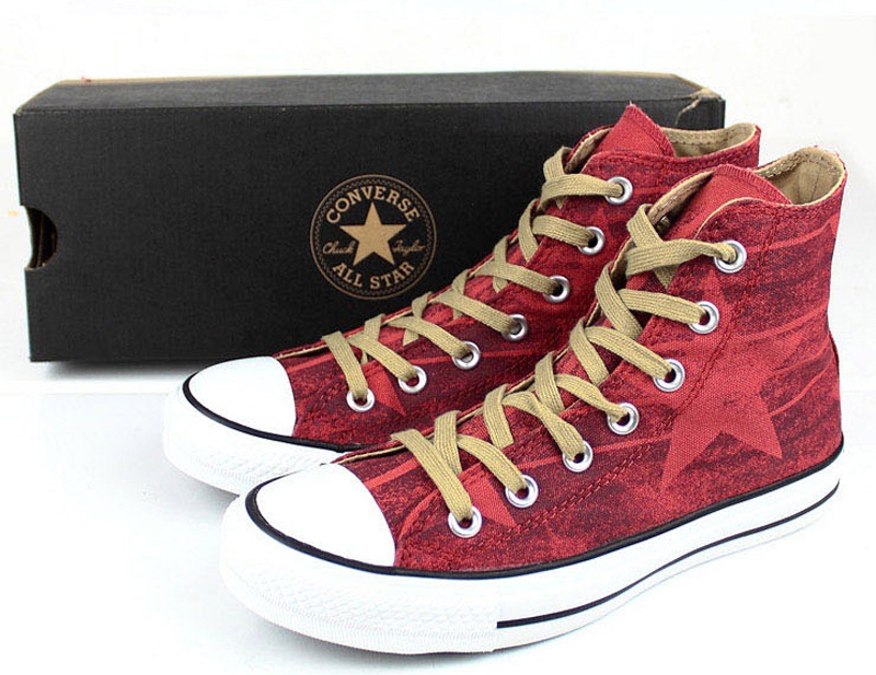 匡威Chuck Taylor朱紅色/巧克力色/米黃色高幫綁帶帆布中性鞋
