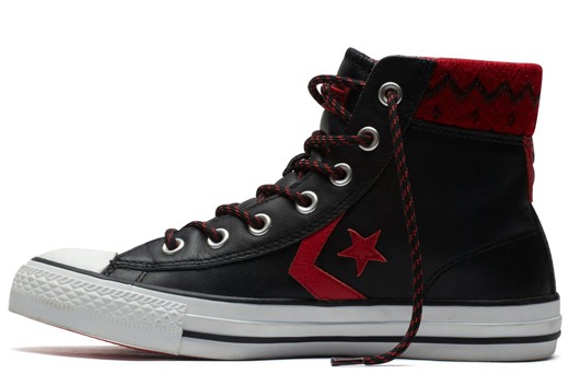 匡威Star Player黑/校園紅色高幫綁帶牛皮中性鞋