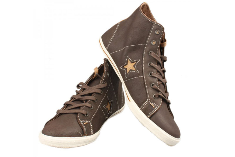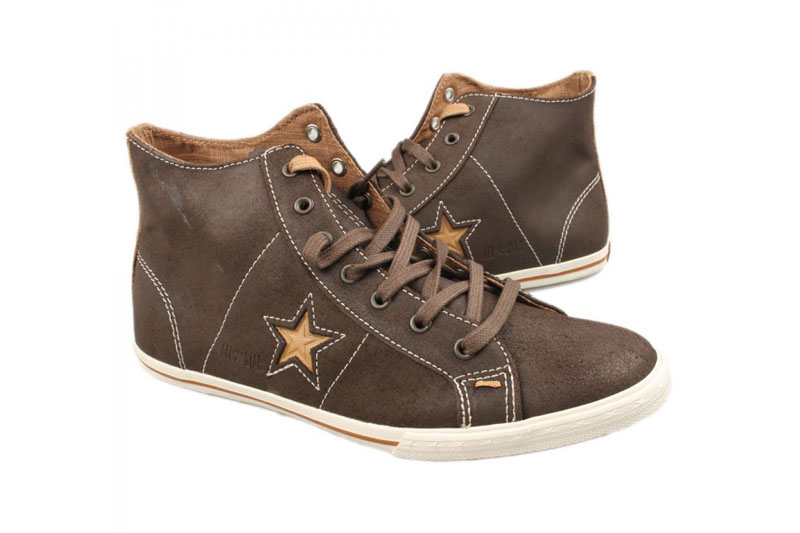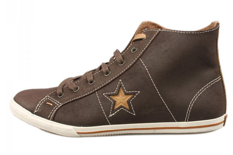 匡威One Star巧克力色高幫綁帶牛皮中性鞋