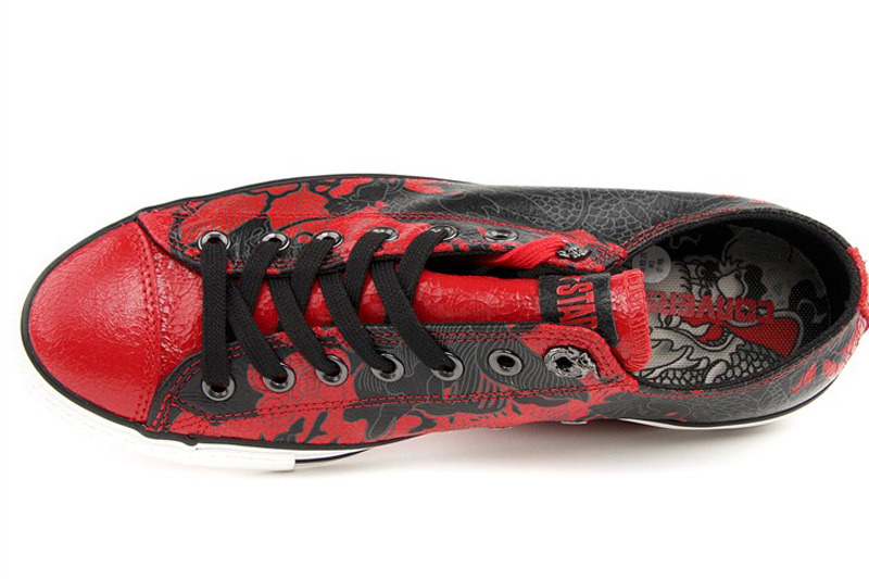 匡威All Star紅/黑低幫綁帶牛皮中性鞋