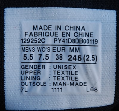 尺碼:(括號內為對應中國碼)