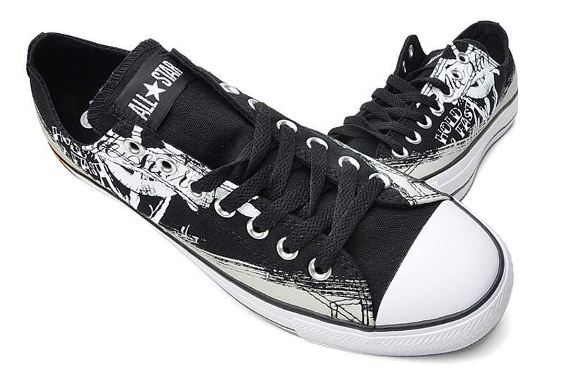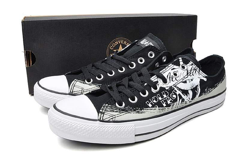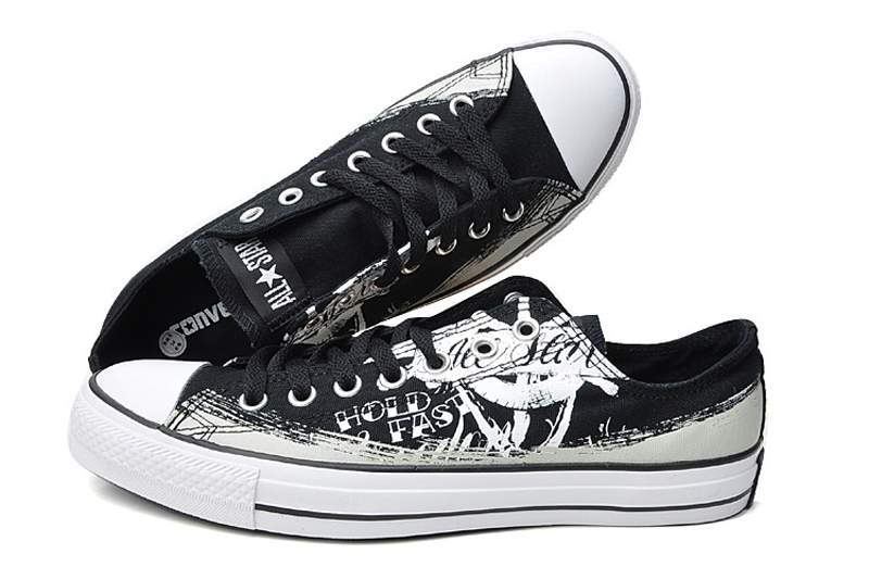 匡威All Star黑/灰白色低幫綁帶帆布中性鞋