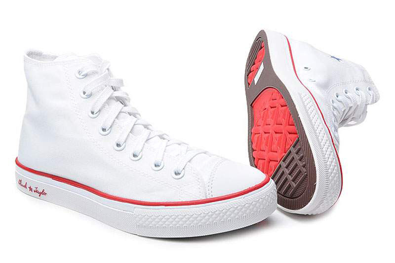 匡威All Star白/紅高幫綁帶帆布中性鞋