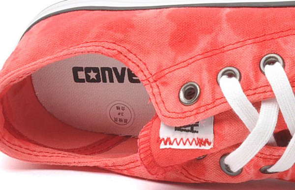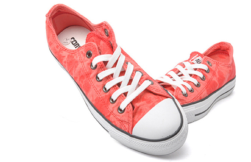 匡威131455-時下水洗產品在服裝界越來越熱,這次CHRCK TAYLOR給你帶來了經特殊漂洗工藝而成的經典鞋款,搖滾味極強(紅色低幫帆布鞋)