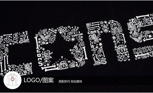匡威圖案T恤墨黑色男裝
