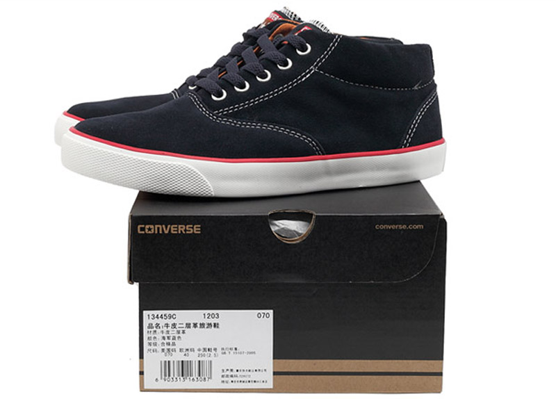 匡威牛皮二層革旅游鞋海軍藍色綁帶牛皮中性鞋