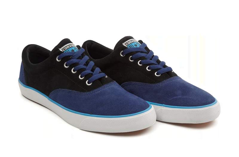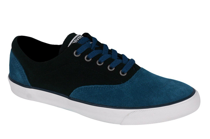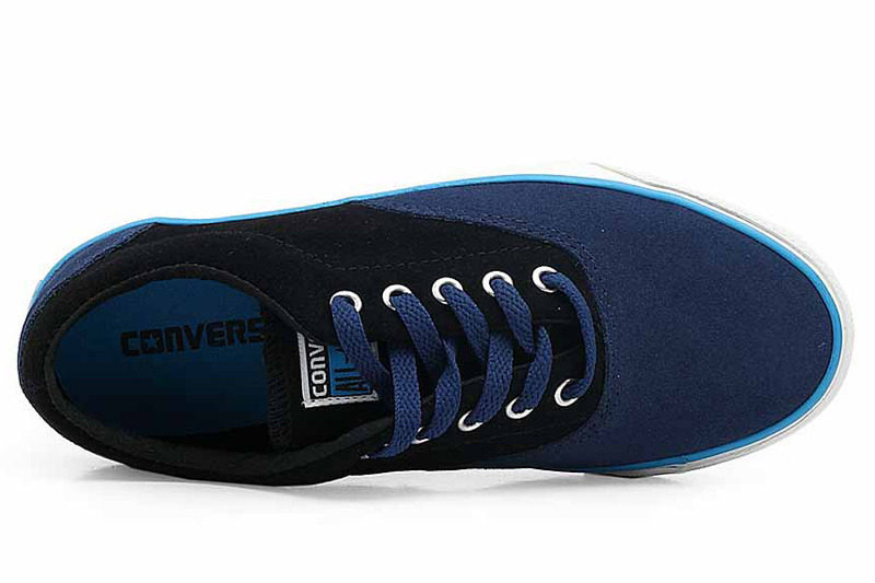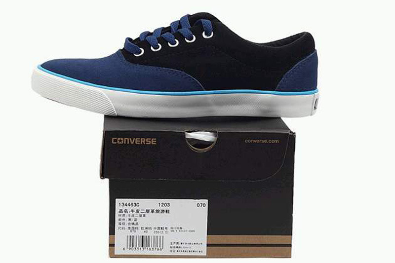 匡威牛皮二層革旅游鞋黑/藍低幫綁帶牛皮中性鞋