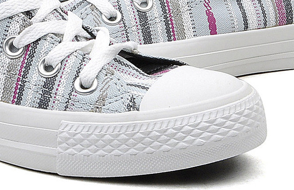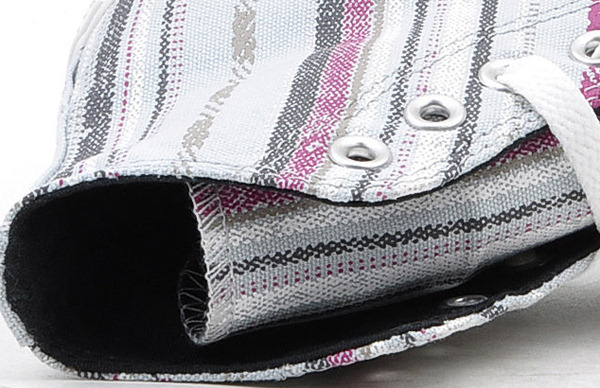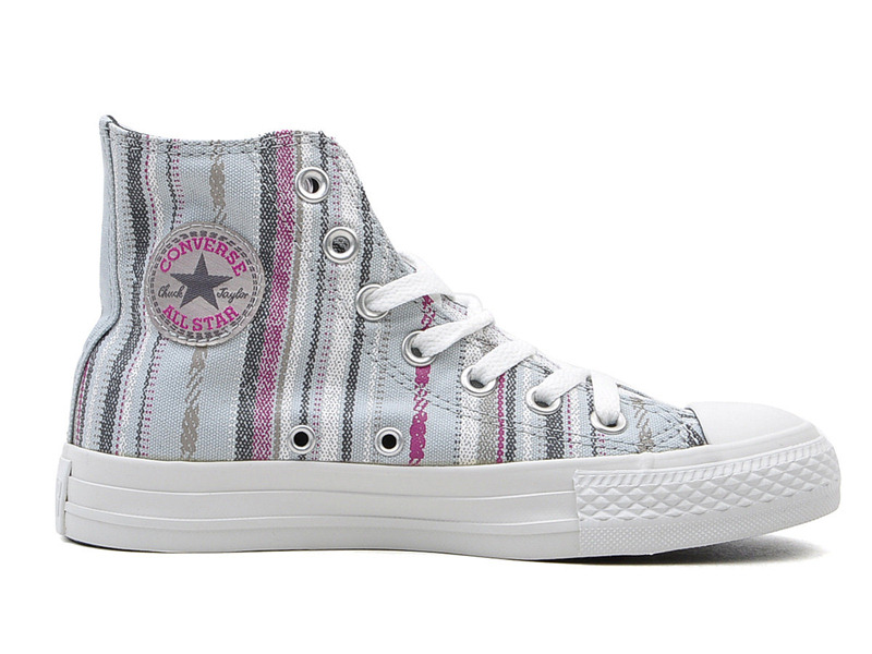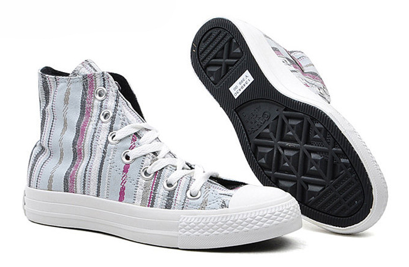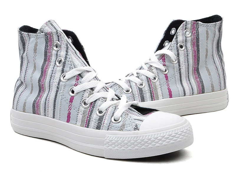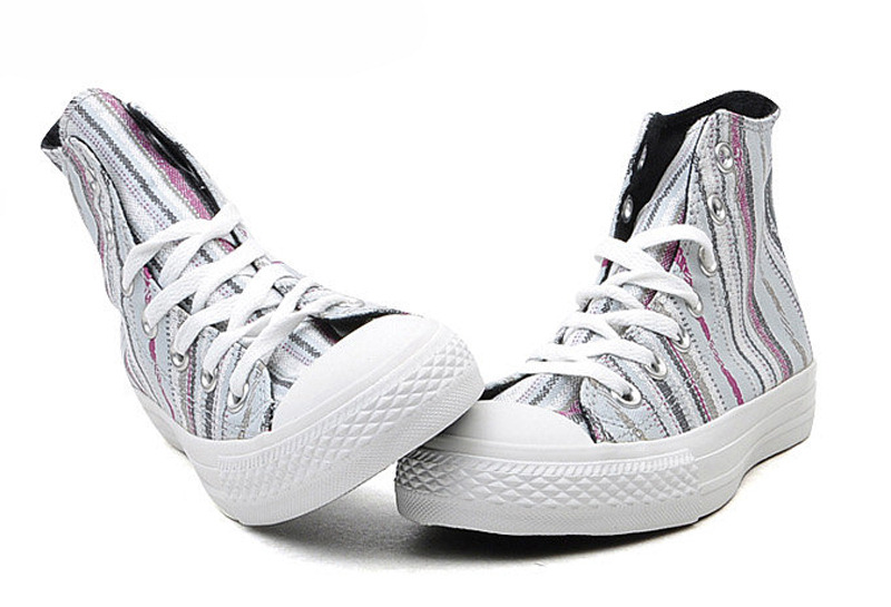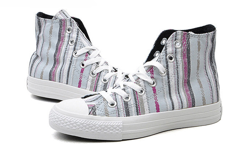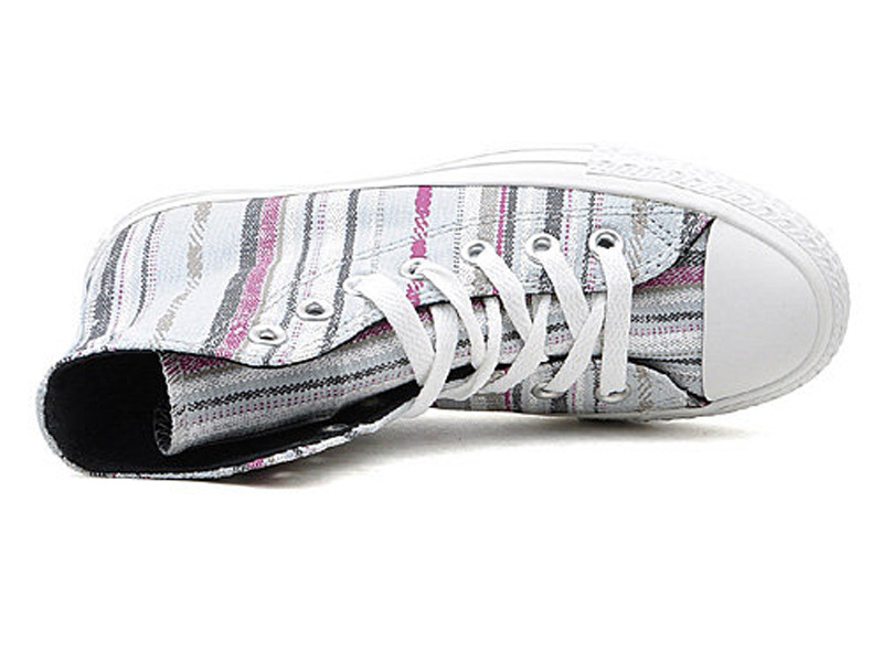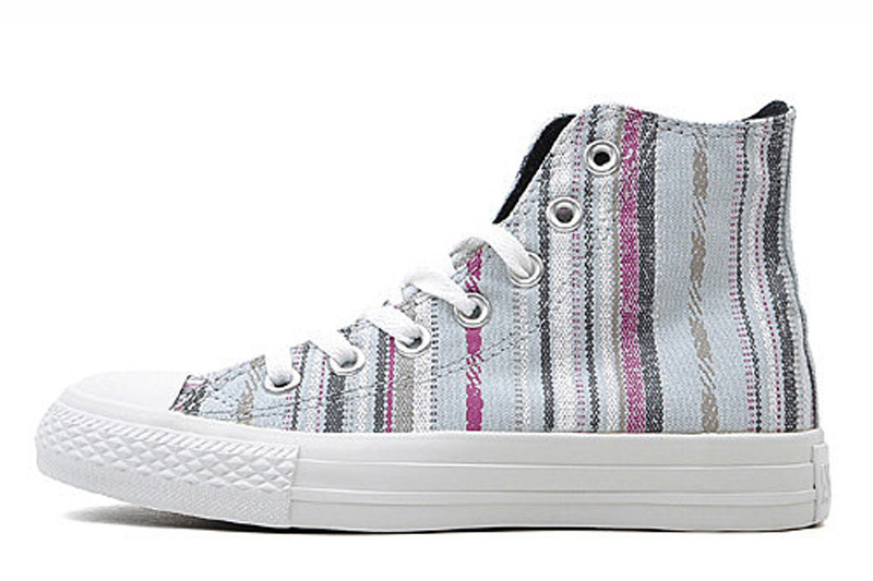 匡威134943-2013年新款134943經典的鞋款設計,簡約大方。采用斜條彩色圖騰圖案 ,色彩明亮鮮艷又不失活潑氣質,年輕人的首選。高幫,帆布,珍珠藍色/多彩
