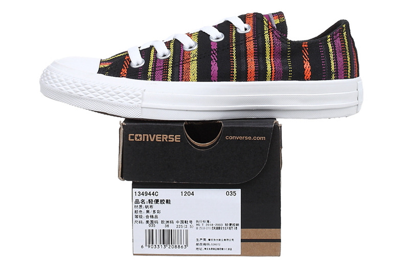 匡威134944-2013年新款134944經(jīng)典的鞋款設(shè)計(jì),簡(jiǎn)約大方。采用斜條彩色圖騰圖案 ,色彩明亮鮮艷又不失活潑氣質(zhì),年輕人的首選。低幫,帆布,黑/多彩