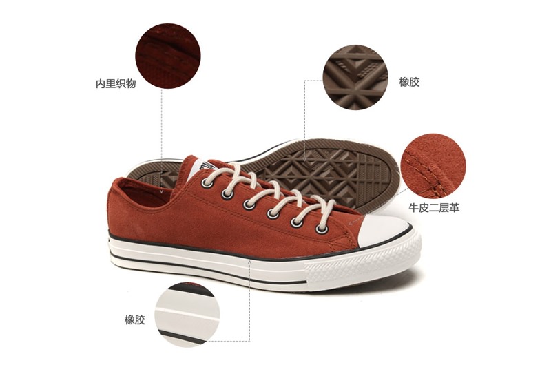 匡威134962-2013年新款134962經典的鞋款設計,簡約大方。采用色彩亮麗的反毛皮低調之中透露著霸氣。金屬質感的鞋眼,以及圓形的鞋帶表現了搖滾的激情所在。懷舊的搖滾浪潮勾起了我們當時的年輕張狂。低幫,牛皮二層革,土紅色
