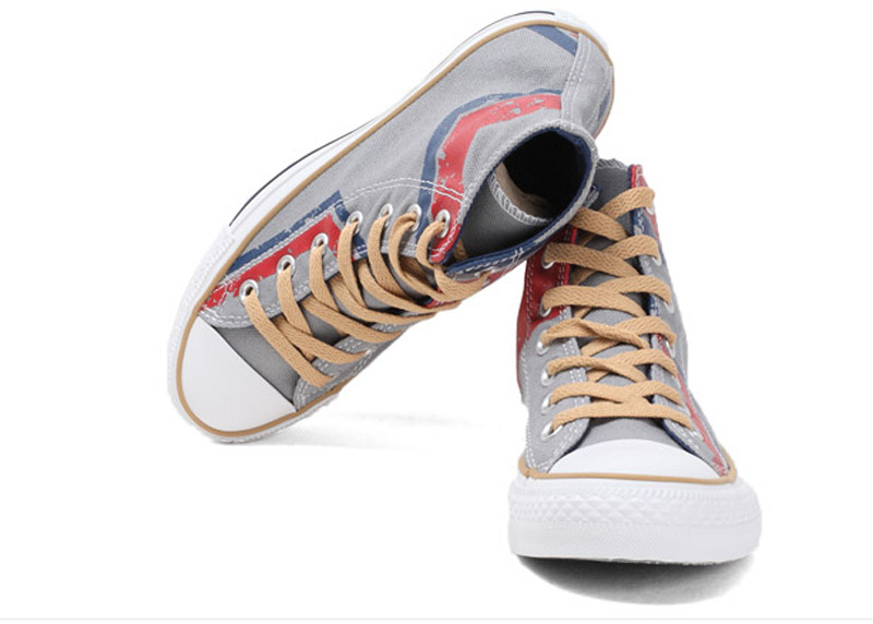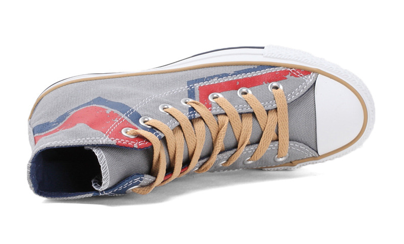 匡威134982X-細膩的帆布印刷工藝和大氣的彩色流線,交織出奔放活潑的氣質,大膽的配色帶給人無窮的快樂感,西部的狂野之風這是此季的潮流 法藤灰色/紅/藍