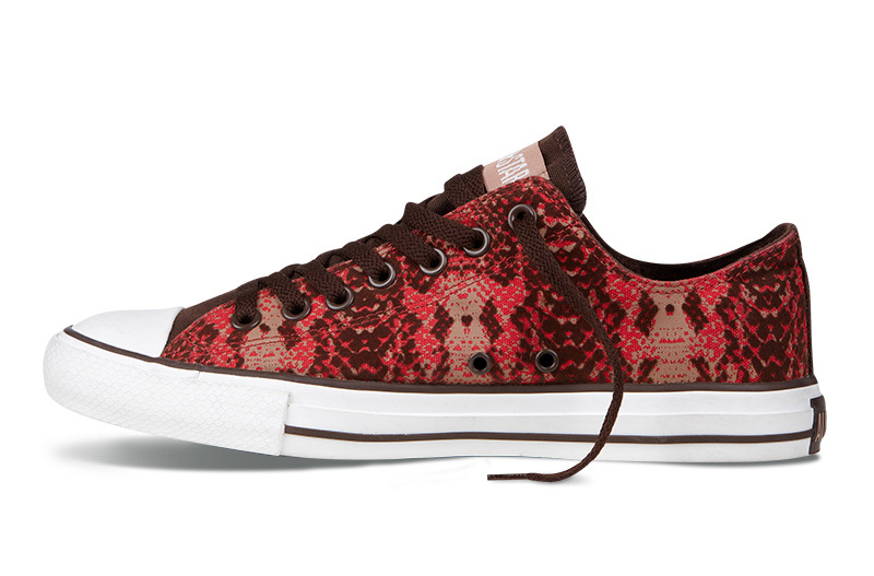 匡威136117-2013年新款136117選用帆布,低幫設計更顯時尚休閑,而鞋面上頗有新意的的蛇紋印刷和植絨,再結合多重色調組合,凸顯了你張揚的個性極其潮流風潮。帆布,紅/巧克力色/黃褐色