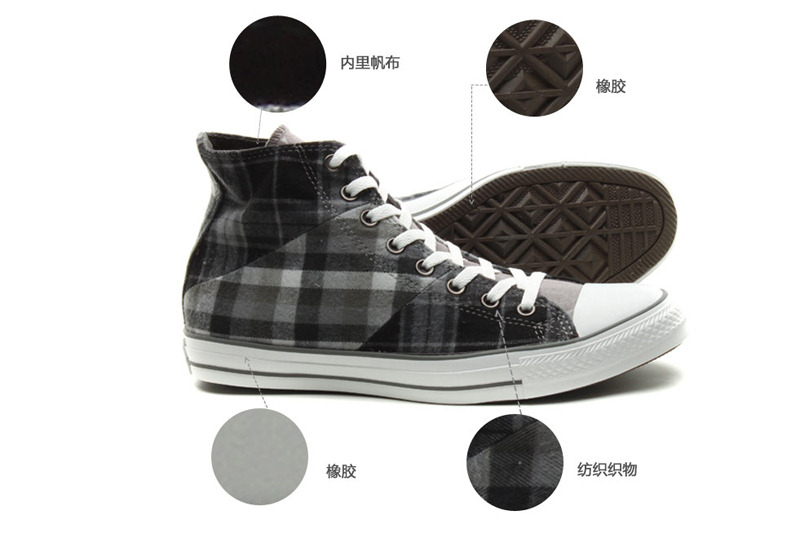 匡威136150-2013年新款136150不同格紋的拼接,延續(xù)了經(jīng)典的品味,配以條紋元素和多重冷色系撞色,是最時(shí)尚的英倫搖滾質(zhì)感,絕對(duì)是春季的必備品之一。紡織織物/帆布,炭灰色/黑/法藤灰色/云灰色