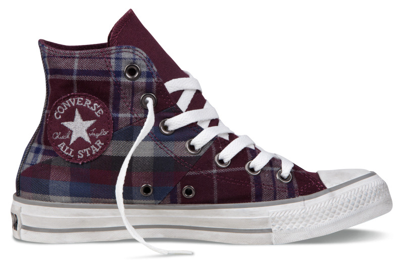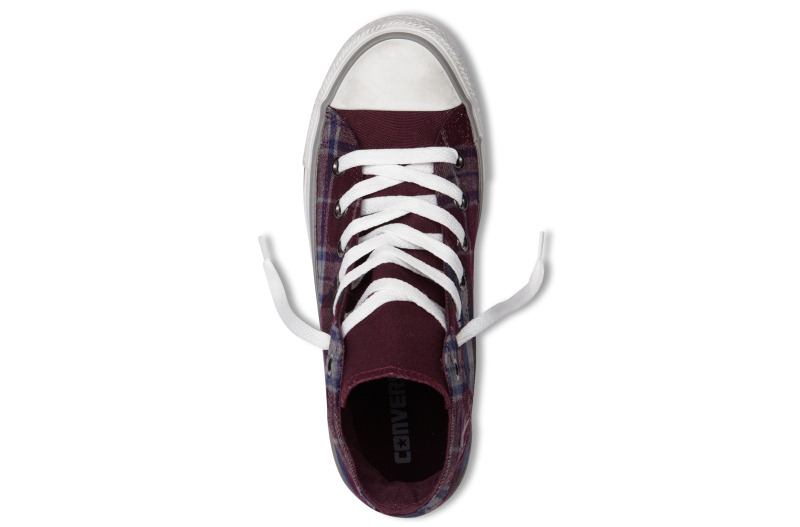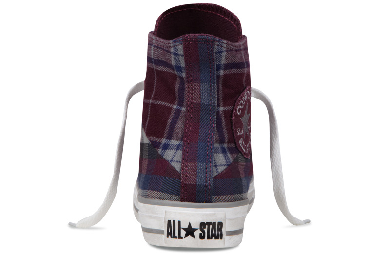 匡威136151-2013年新款136151不同格紋的拼接,延續了經典的品味,配以條紋元素和多重冷色系撞色,是最時尚的英倫搖滾質感,絕對是春季的必備品之一。紡織織物/帆布,紫/藍/法藤灰色/黑