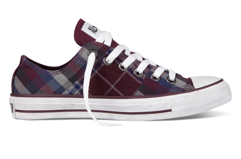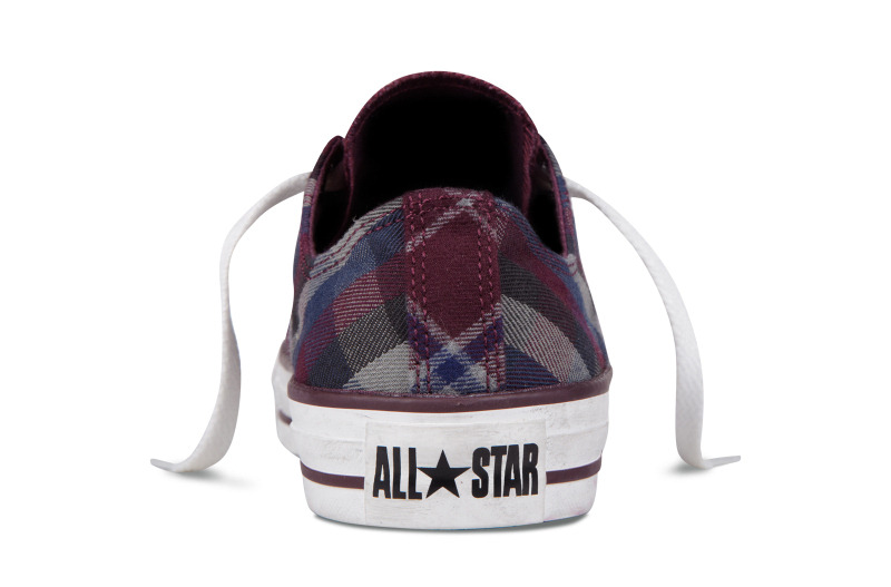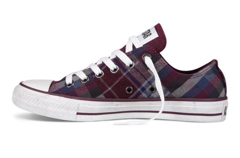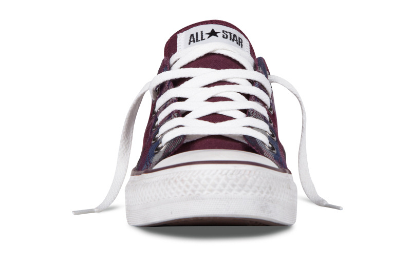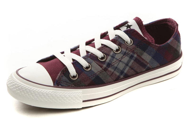 匡威136154-2013年新款136154不同格紋的拼接,延續了經典的品味,配以條紋元素和多重冷色系撞色,是最時尚的英倫搖滾質感,絕對是春季的必備品之一。紡織織物/帆布,紫/藍/法藤灰色/黑