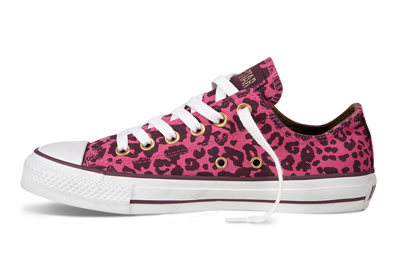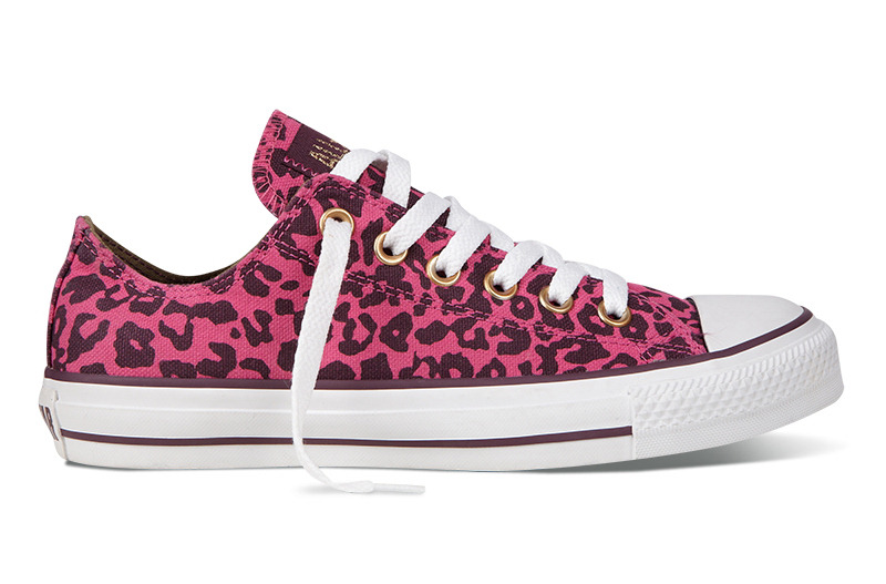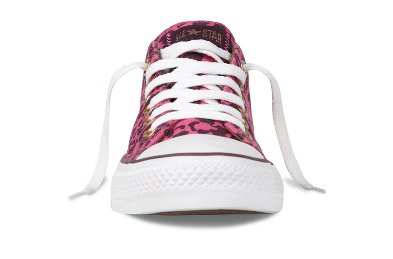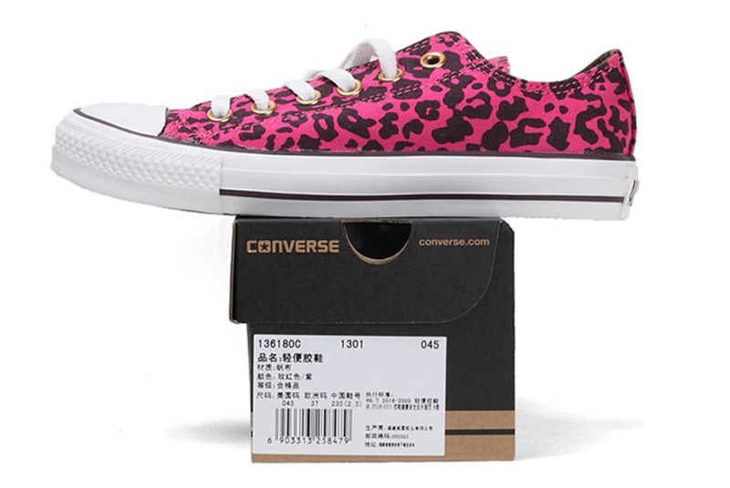 匡威136180-2013年新款136180大面積的豹紋圖案充滿著波普感覺,和經(jīng)典鞋款搭配,加上濃烈的玫紅色和紫色搭配,野性十足而不失時(shí)尚風(fēng)潮。帆布,玫紅色/紫