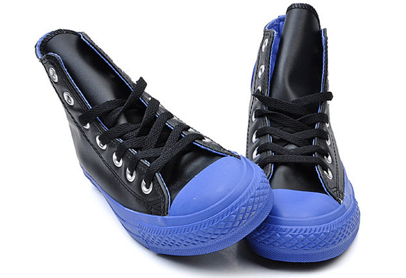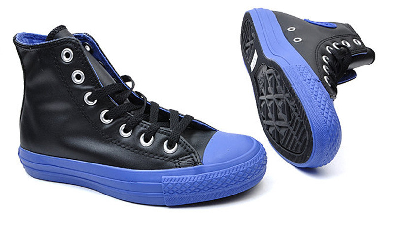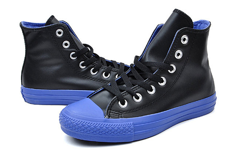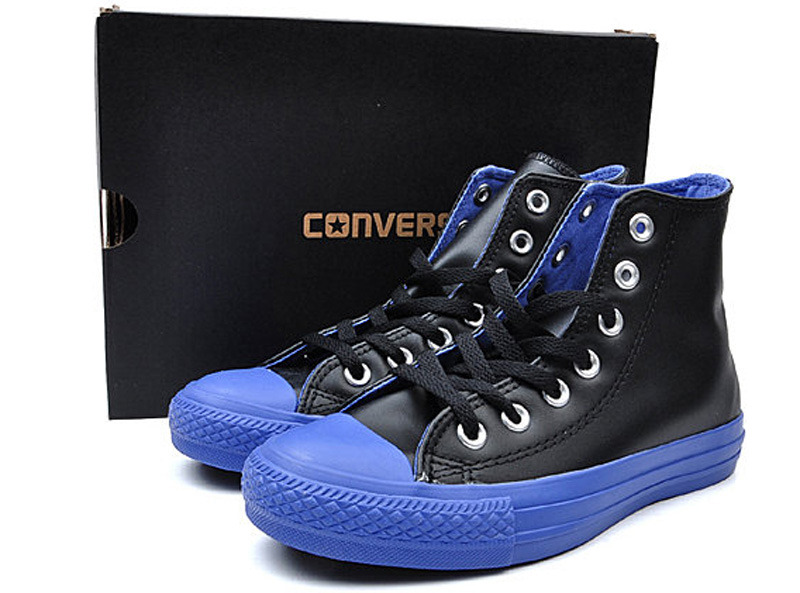 匡威CHUCK TAYLOR黑/藍(lán)高幫綁帶牛皮中性鞋