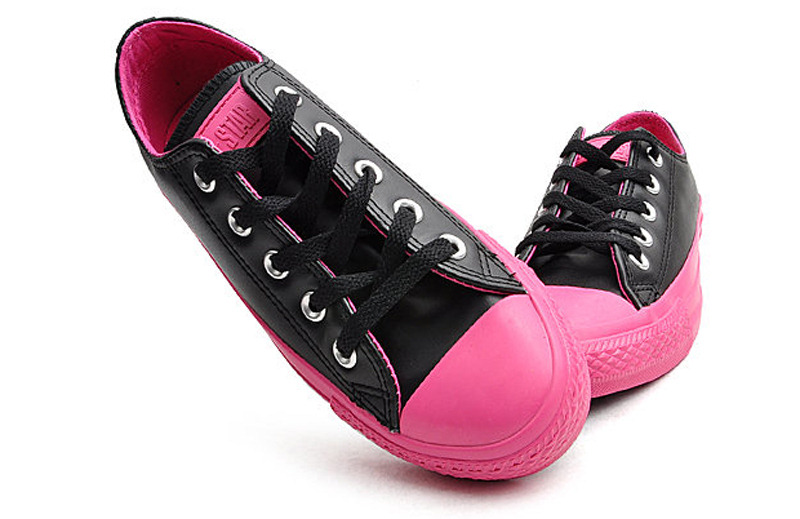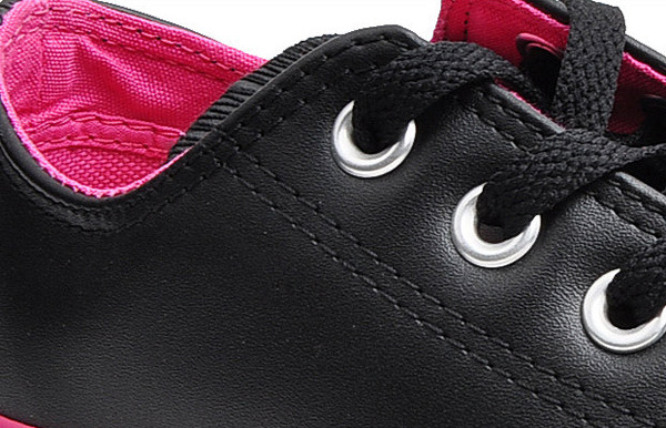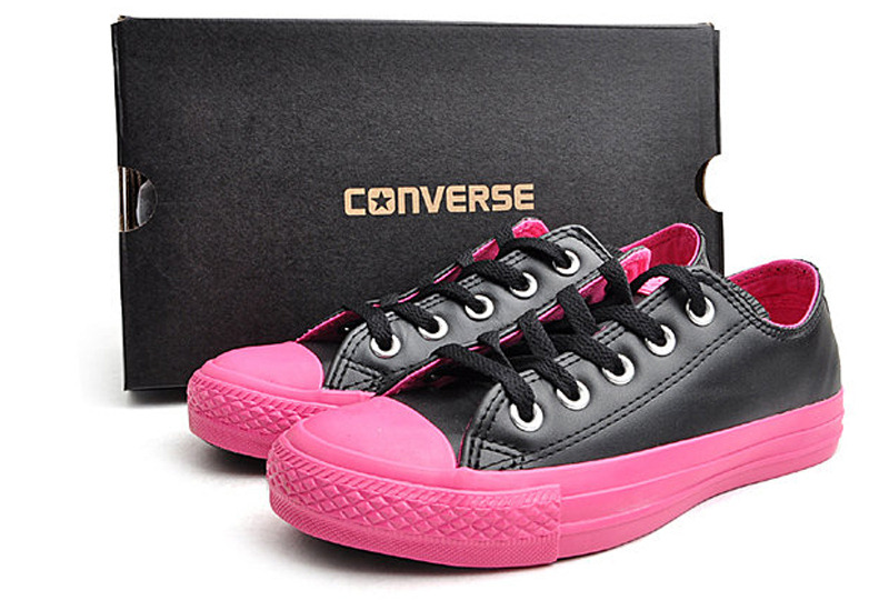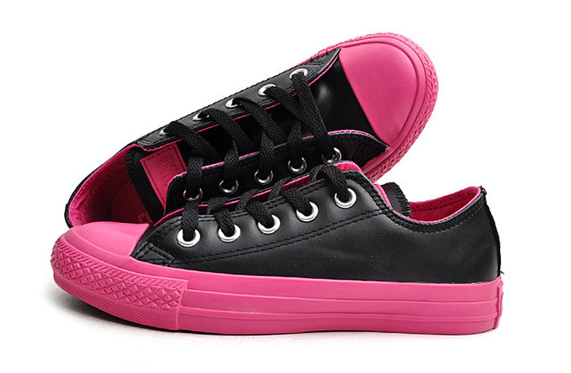 匡威CHUCK TAYLOR黑/粉低幫綁帶牛皮中性鞋