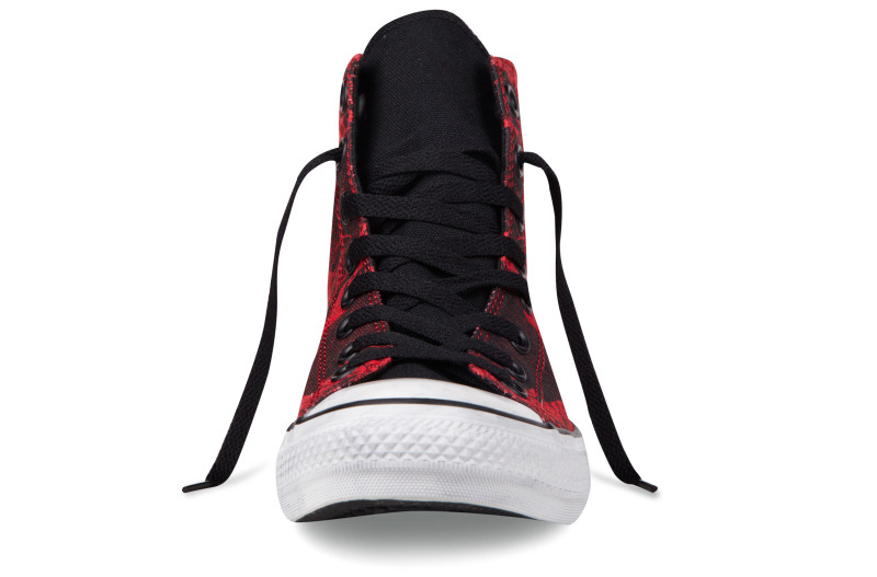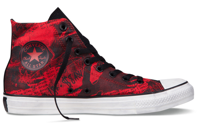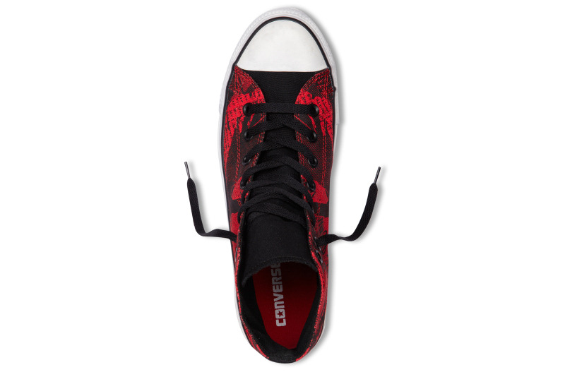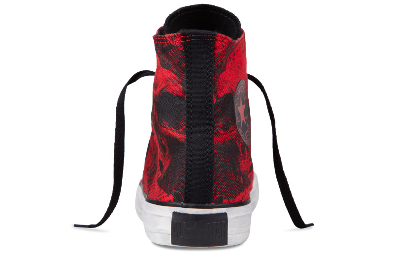 匡威136258-2013年新款136258經典的骷髏頭,加上文字的拼接印刷,和極具個性的撞色,結合鞋圍邊的做舊效果,盡顯潮流搖滾范兒。帆布,黑/校園紅