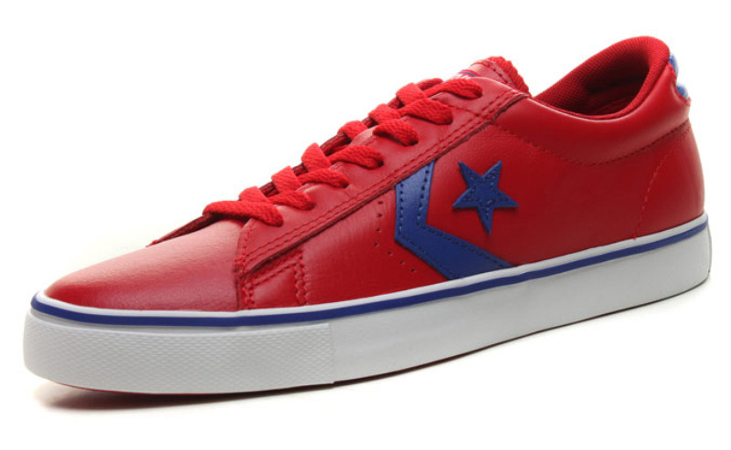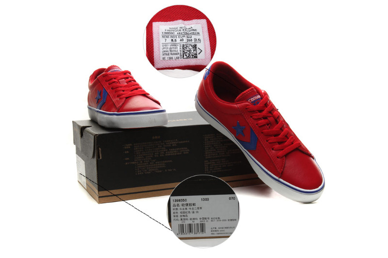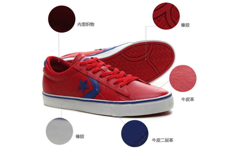 匡威輕便膠鞋校園紅色/藍/白低幫綁帶牛皮中性鞋