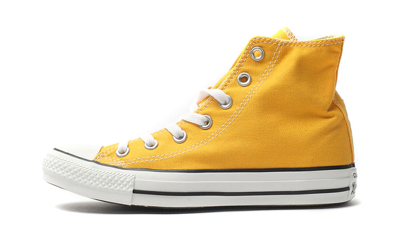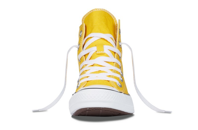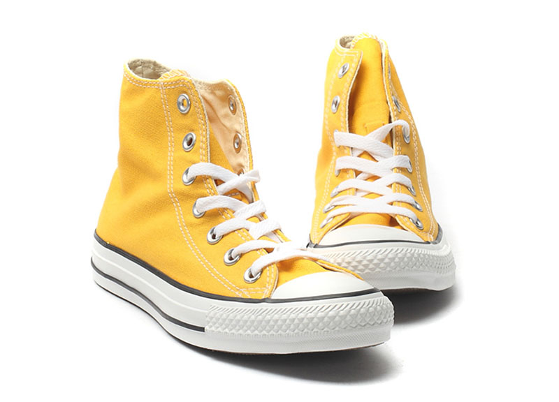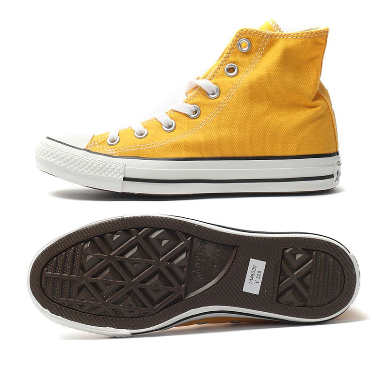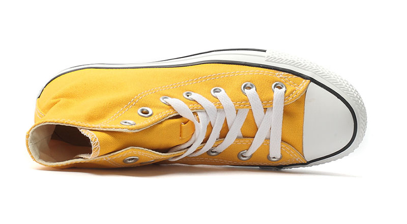 匡威輕便膠鞋黃色高幫綁帶帆布中性鞋