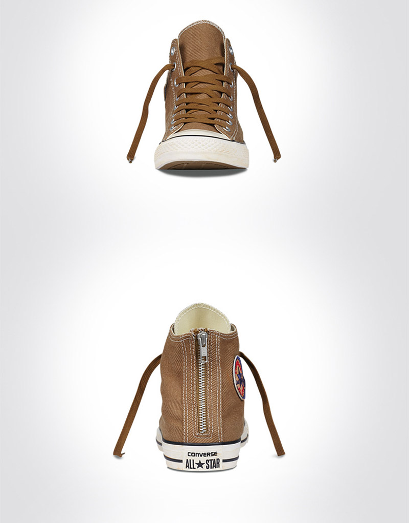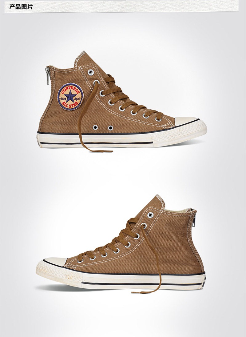 匡威145500-鞋跟金屬拉鏈款式凸顯硬朗范,鞋面具有做舊感,是體現美式文化的鞋款。鞋面是帆布的材質增強透氣感,呈現舒適與柔軟。橡膠鞋底紋路清晰自然,在運動還是休閑時候穿著都具有防滑耐磨的效果,同時保持著鞋子的輕盈。