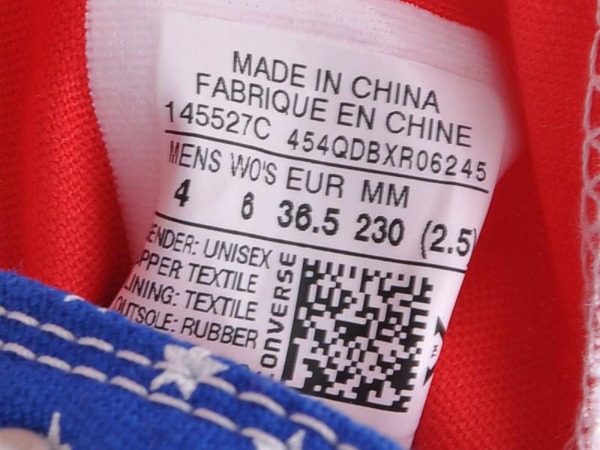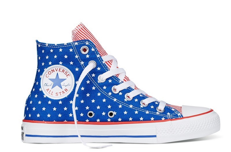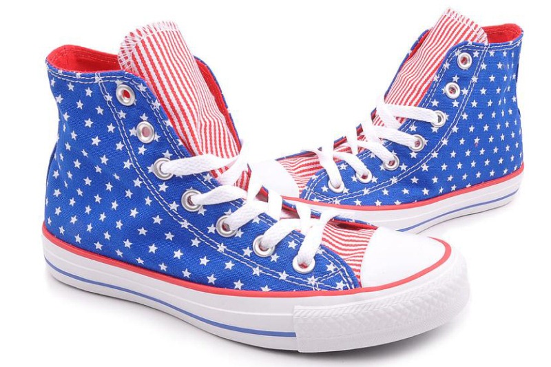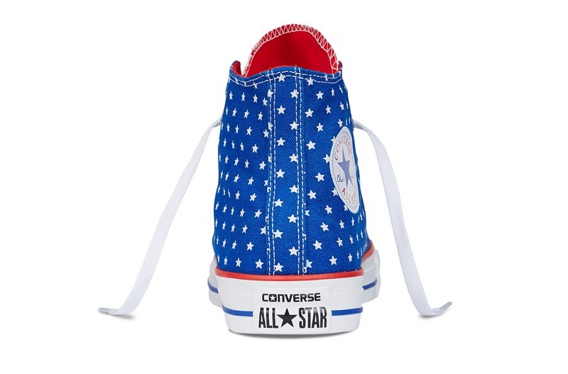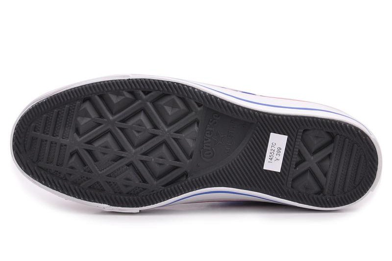 匡威145527-以基本款Chuck Taylor All Star為藍本,星星加條紋的印花圖案來源于美國國旗,是體現美式文化的鞋款。撞色設計亮麗醒目,洋溢青春氣息。高幫,帆布。