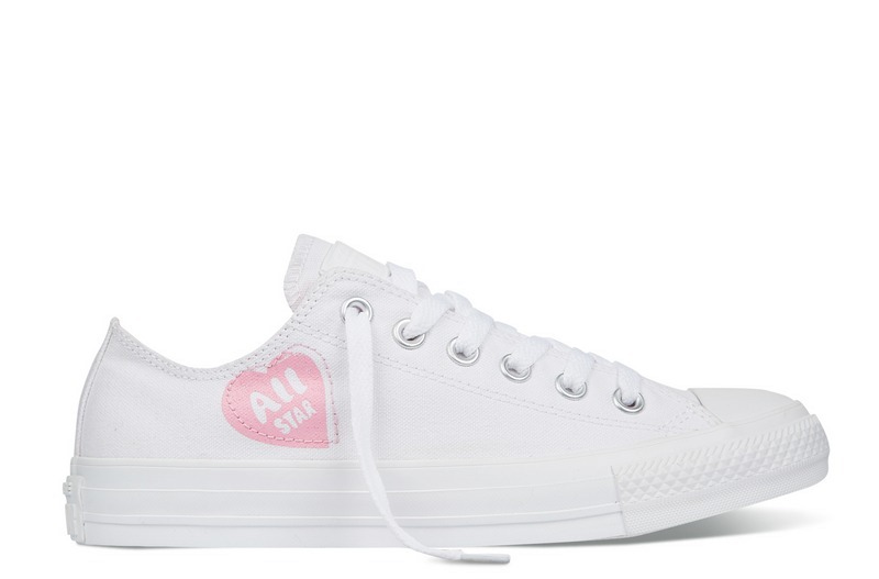 匡威輕便膠鞋白色/粉色低幫綁帶帆布女鞋