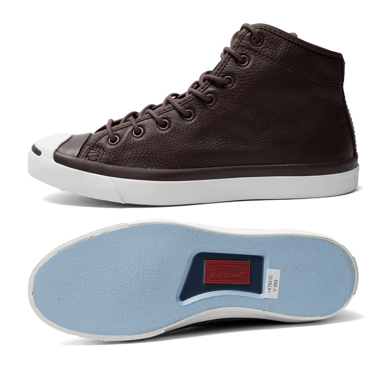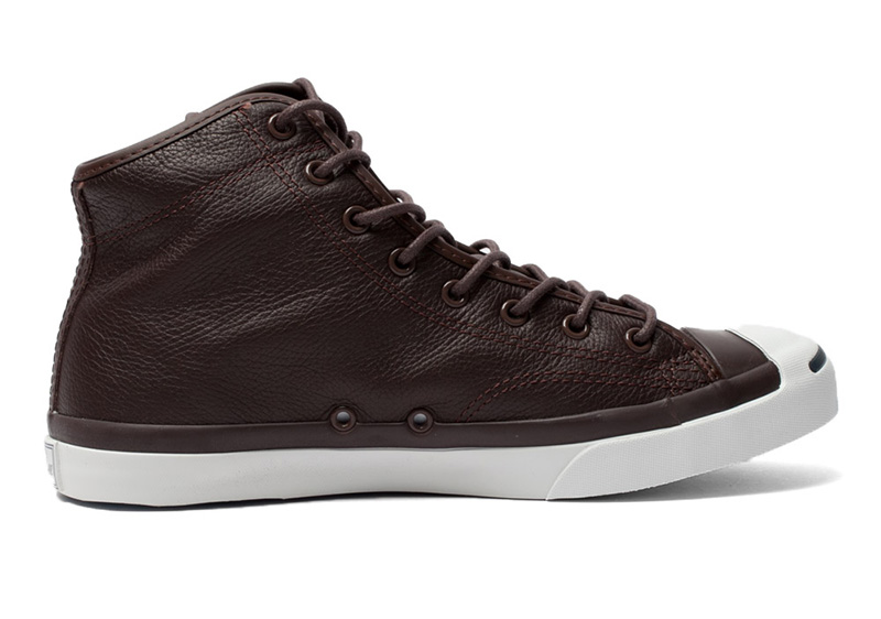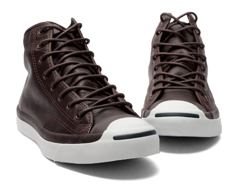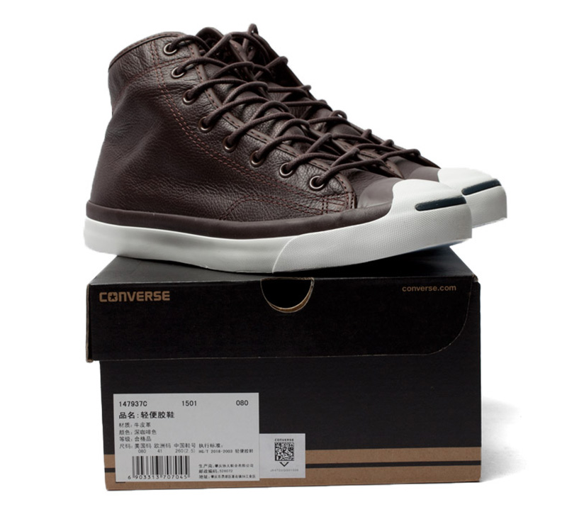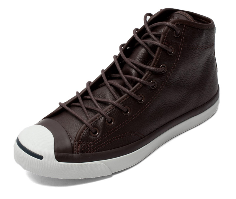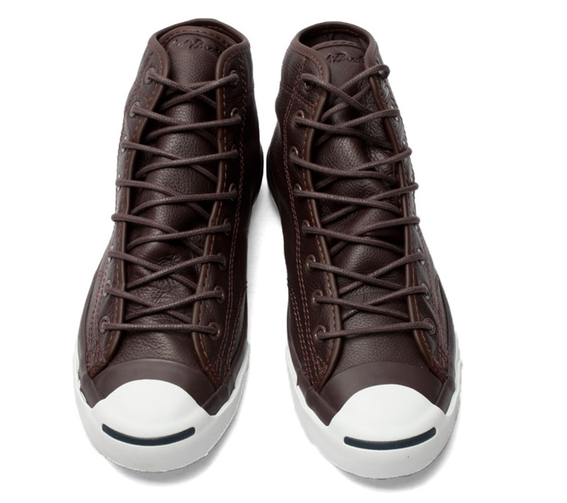 匡威JACK PURCELL深咖啡色高幫綁帶牛皮中性鞋