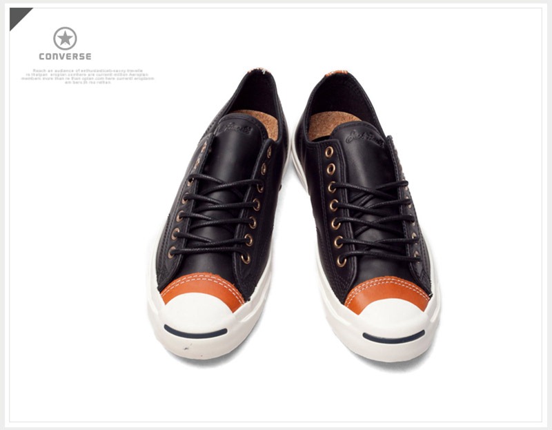 匡威CONVERSE JACK PURCELL-Seasonal黑色/深橘色/白色低幫綁帶牛皮男鞋