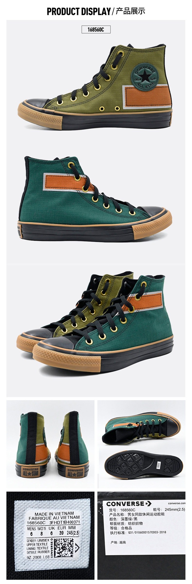- 簡介:匡威168560C-CONVERSEChuckTaylorAllStar運動休閑系列DarkMoss/Black/MidnightClover168560C