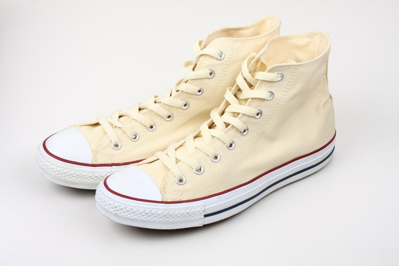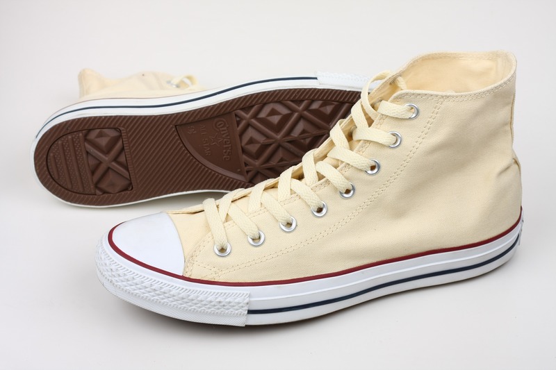匡威All Star系列米色高幫綁帶帆布中性鞋