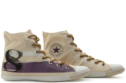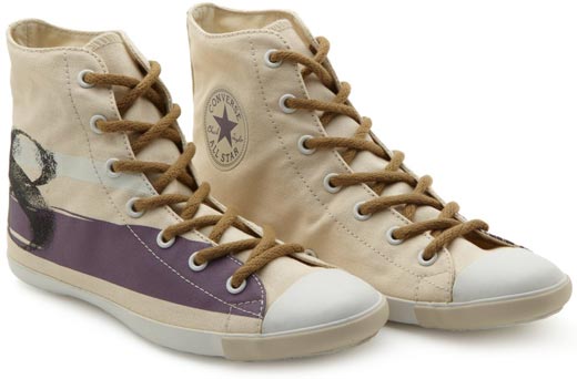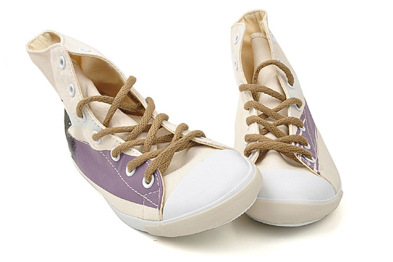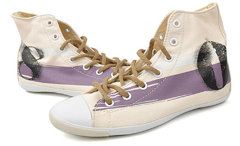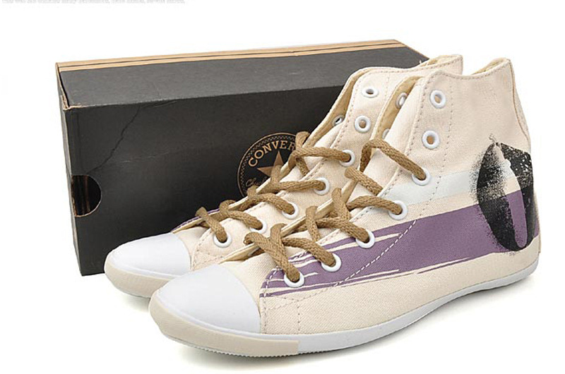 匡威All Star米色/深紫色/黑高幫綁帶帆布女鞋