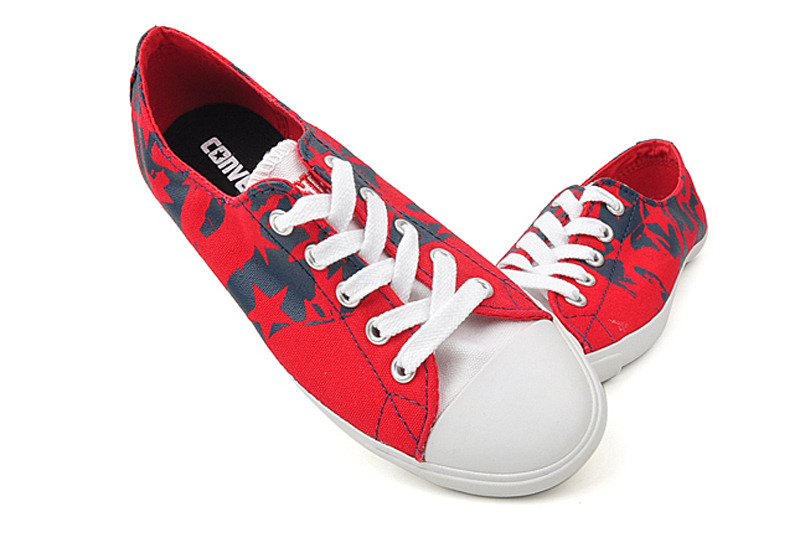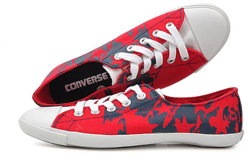 匡威All Star紅/海軍藍色低幫綁帶帆布女鞋