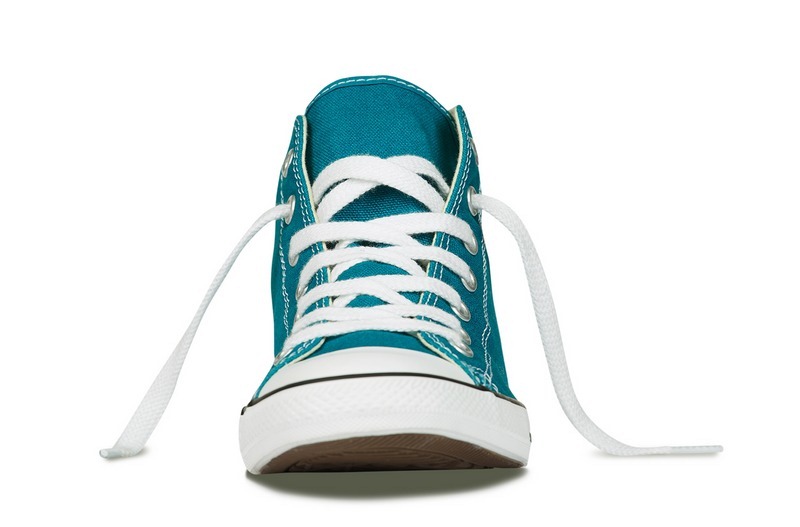 匡威輕便膠鞋藍綠色高幫綁帶帆布女鞋