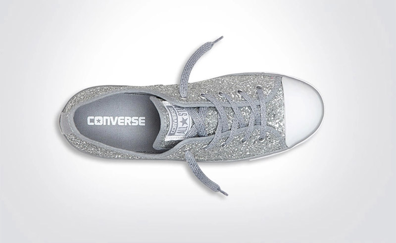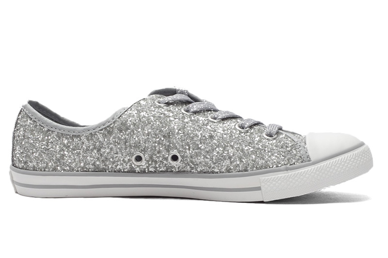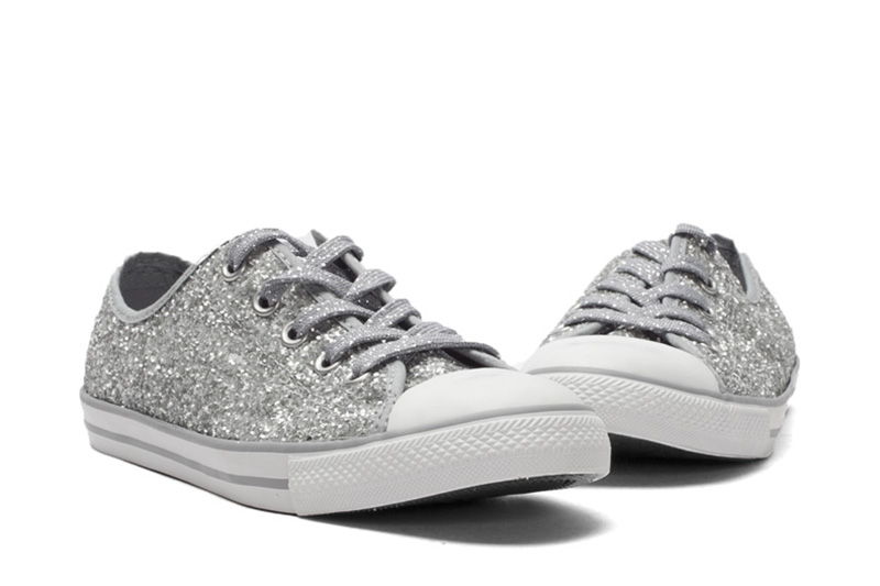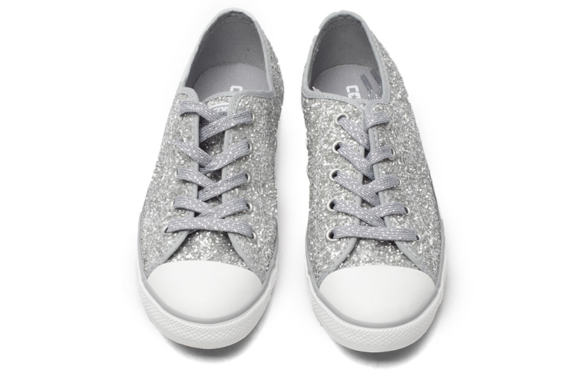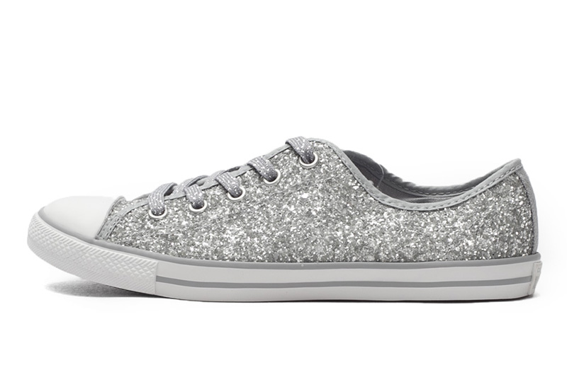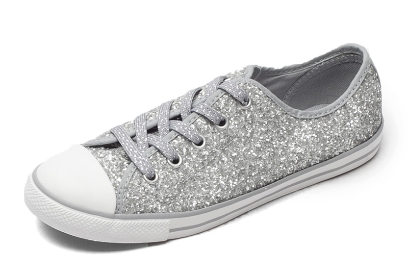 匡威544958-專為女性設計的Dainty鞋型,整體看上去較優雅和小巧秀氣。鞋面布滿亮片,低調中彰顯一絲華麗。精致包邊細節凸顯高級質感。彈性橡膠薄底,行走輕盈自在