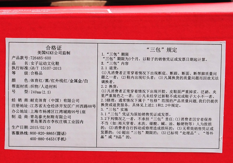 耐克鞋類保養須知: