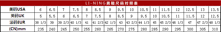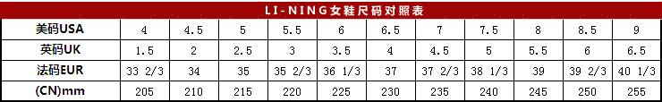 尺碼對照