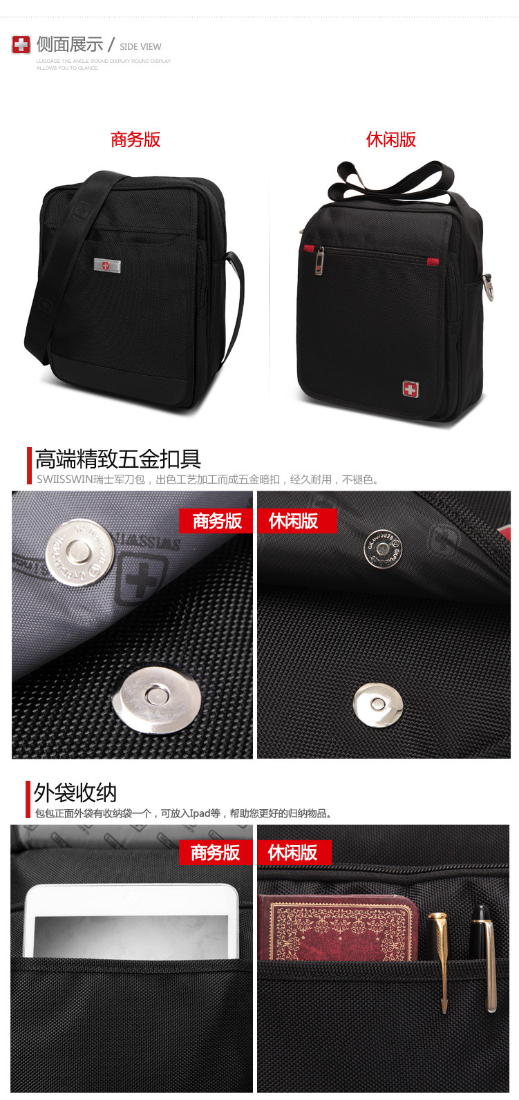 - 瑞士軍刀-單肩包黑色單肩包